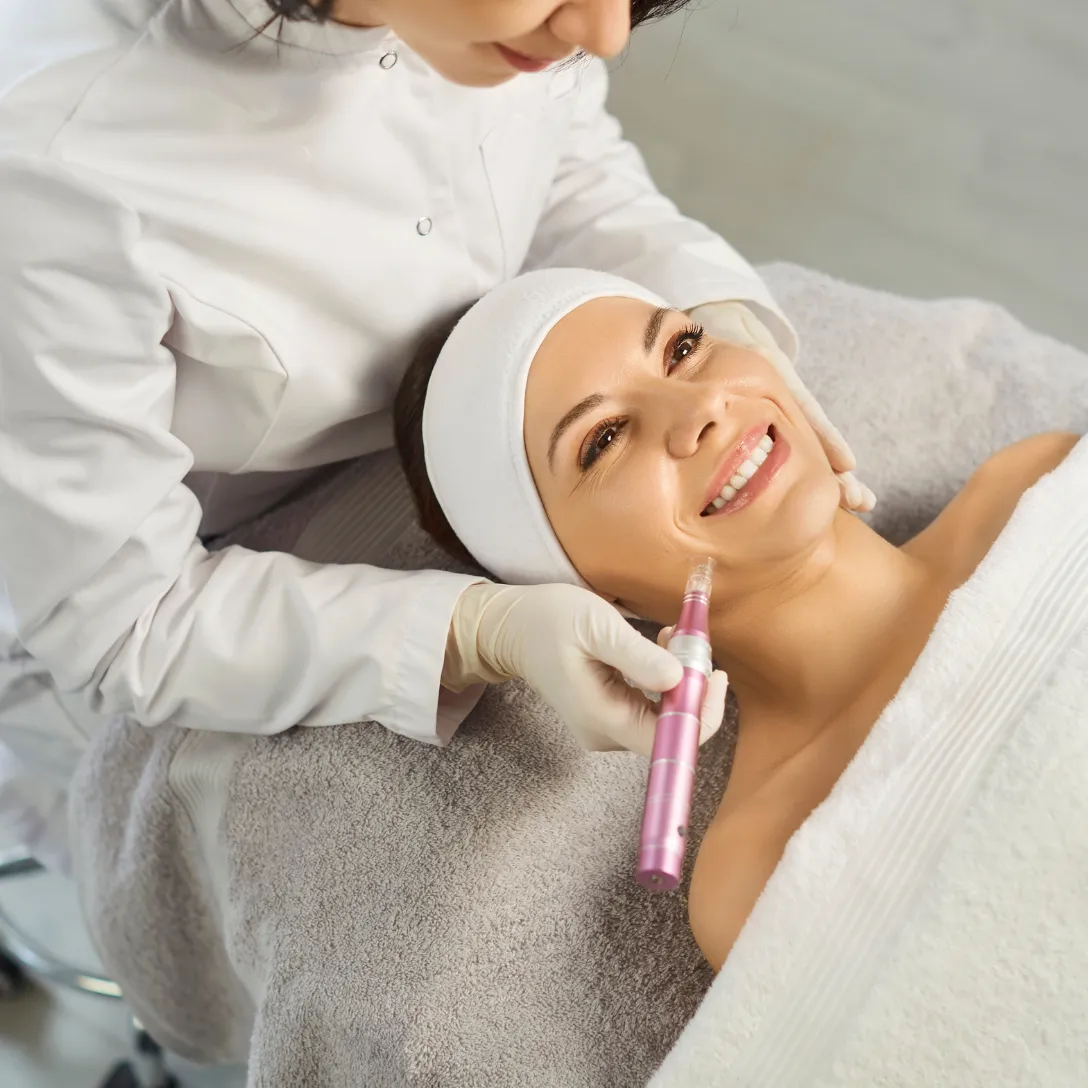 Microneedling med eksosomer (Purasomes NC150+): Leverer 20 milliarder organiske eksosomer fra råmelk for å stimulere kollagen, reparasjon og fuktighet.